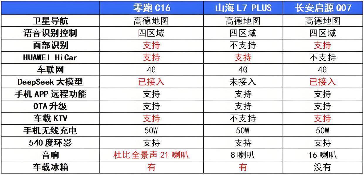 对比来看,表现比较均衡的就是零跑C16,上述13个选项它都支持,而且音响效果更好,配置和功能也更全面。